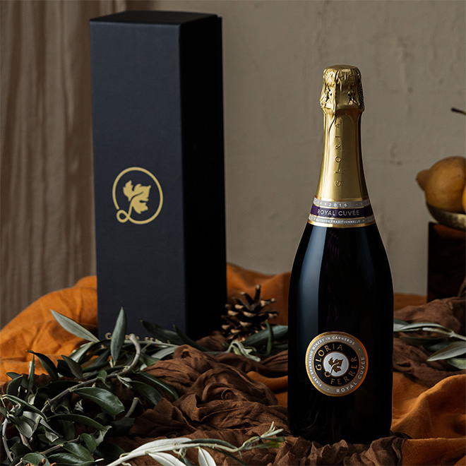 This gift set includes our prestigious tête de cuvée sparkling wine, the 2013 Carneros Cuvée, beautifully presented in a sleek black one-bottle gift box embossed with our gold logo. It’s the ultimate gift for the sparkling wine connoisseur in your life.